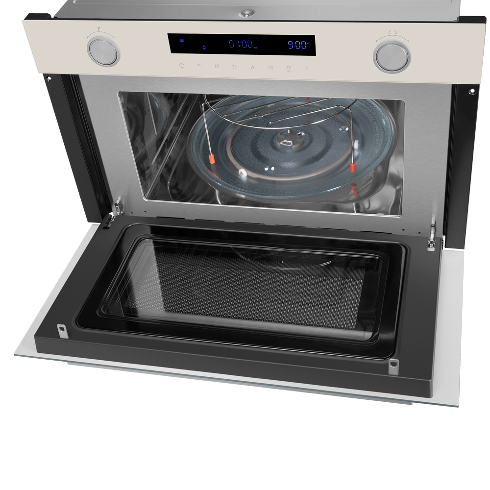 Конвекционный вентилятор устанавливается в микроволновках без поворотного стола: равномерное распределение горячего воздуха позволяет размещать в камере сразу несколько блюд. Комбинация вентилятора и верхнего гриля называется турбогрилем: этот режим очень хорош для выпечки больших пирогов и кексов. Сочетание гриля и конвекции подойдет и для приготовления больших кусков мяса или целой птицы и рыбы. Добавление традиционного нижнего нагревательного элемента превращает микроволновую печь в аналог полноценной духовки: с ее помощью можно готовить, разогревать и размораживать, запекать и томить, обжаривать и тушить.
