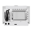 Внешне аппарат выполнен в светлой, нейтральной гамме — фурнитура и корпус выдержаны в одном тоне, что делает прибор не выделяющимся в интерьере и позволяет ему легко сочетаться с мебелью пастельных оттенков. Откидная дверца с нижним упором и кнопочным открыванием обеспечивает удобный доступ к камере, а стеклянное вращающееся блюдо диаметром 24.5 см добавляет классический штрих. Внутренняя камера с нержавеющим покрытием смотрится лаконично и обеспечивает простой уход, а встроенная лампа делает контроль за готовкой удобным без открытия дверцы.