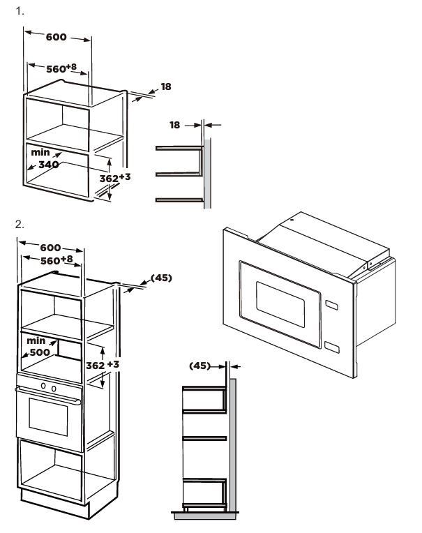 Высота микроволновой печи, то есть расстояние от основания до крышки прибора, определяется прежде всего типом встраивания. Отдельно стоящие модели — как соло, так и оснащенные грилем или конвекцией, — с камерой объемом от 15 до 30 литров, имеют высоту около 30 см. Такие микроволновки удобно размещаются на столе; при необходимости их можно убрать на полку или в шкаф. Встраиваемые в стандартную кухонную колонну или тумбу многофункциональные микроволновые печи имеют ту же высоту, что и другая встроенная техника: для компактных приборов она составляет 45 см, а для полноразмерных — порядка 60 см.