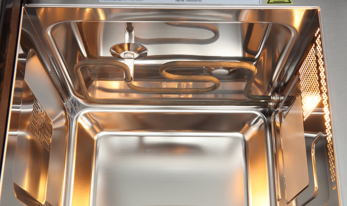 Нержавеющая сталь — быстро нагревается и хорошо переносит высокие температуры, поэтому ее используют в микроволновках с конвекцией.