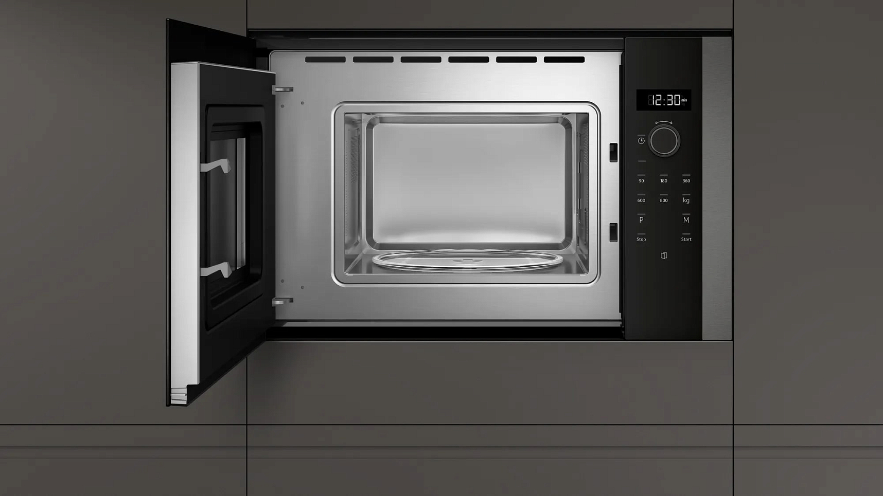 Глубина микроволновой печи —параметр, наиболее сильно влияющий на объем камеры и на диаметр вращающегося стеклянного блюда. Отдельно стоящие микроволновки соло, а также приборы, оснащенные грилем, имеют глубину от 35 до 45 см. При их установке на столешнице следует учитывать, в какую сторону и насколько широко будет открываться дверца. Глубина микроволновки, которая встраивается в кухонную мебель, также варьируется в широком диапазоне. Для полноразмерных моделей с откидной или навесной дверцей она может составить около 52-55 см, а для менее вместительных приборов — порядка 32-35 см.