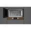 Гораздо шире выбор цветов у встраиваемых моделей. Большинство подобных микроволновок относится к премиум-сегменту, что предполагает большее разнообразие дизайна, тем более учитывается при этом только цвет фасада. Пребладают на рынке все те же модели белого и черного цветов, а также стальных и серебристых оттенков. Среди них можно выбрать микроволновки в современном и классическом стиле. Кроме них, можно выделить модели Teka и Zigmund Shtain из коллекции Кантри теплого оттенка ванили в сочетании с фурнитурой цвета состаренной бронзы. Интересны СВЧ-печи с фасадами сдержанных оттенков: серого с платиновым стеклом от V-ZUG, цвета серого камня от Teka, графитового серого от Miele. Яркие тона для этих микроволновок используются редко: среди них модели красного цвета Kuppersberg, медного от Korting, коричневого от Teka и Smeg.