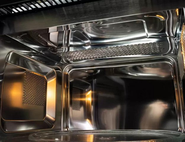 Нержавеющая сталь — быстро нагревается и хорошо переносит высокие температуры, поэтому ее используют в микроволновках с конвекцией.