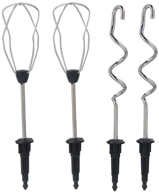 Крюки для теста представляют собой спираль, изготовленную из нержавеющей стали, с крюком на конце и используются для смешивания теста разной консистенции, от жидкого до плотного, а также для приготовления густых соусов или кремов. При использовании крюков получается однородная, но не взбитая смесь.