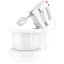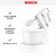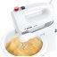 Обратите внимание на цвет миксера Бош — белый — он может стать как гармоничным дополнением кухонной обстановки, так и ярким акцентом. В комплекте с самим прибором идут дополнительные элементы: венчик для взбивания, крюки для теста.