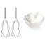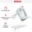 Обратите внимание на цвет миксера Бош — белый — он может стать как гармоничным дополнением кухонной обстановки, так и ярким акцентом. В комплекте с самим прибором идут дополнительные элементы: венчик для взбивания, крюки для теста.