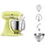 Обратите внимание на цвет миксера Китчен Эйд — сияние Киото — он может стать как гармоничным дополнением кухонной обстановки, так и ярким акцентом. В комплекте с самим прибором идут дополнительные элементы: венчик для взбивания, крюки для теста, насадка-лопатка для перемешивания, чаша из нержавеющей стали объемом 3 л, прозрачный защитный обод.