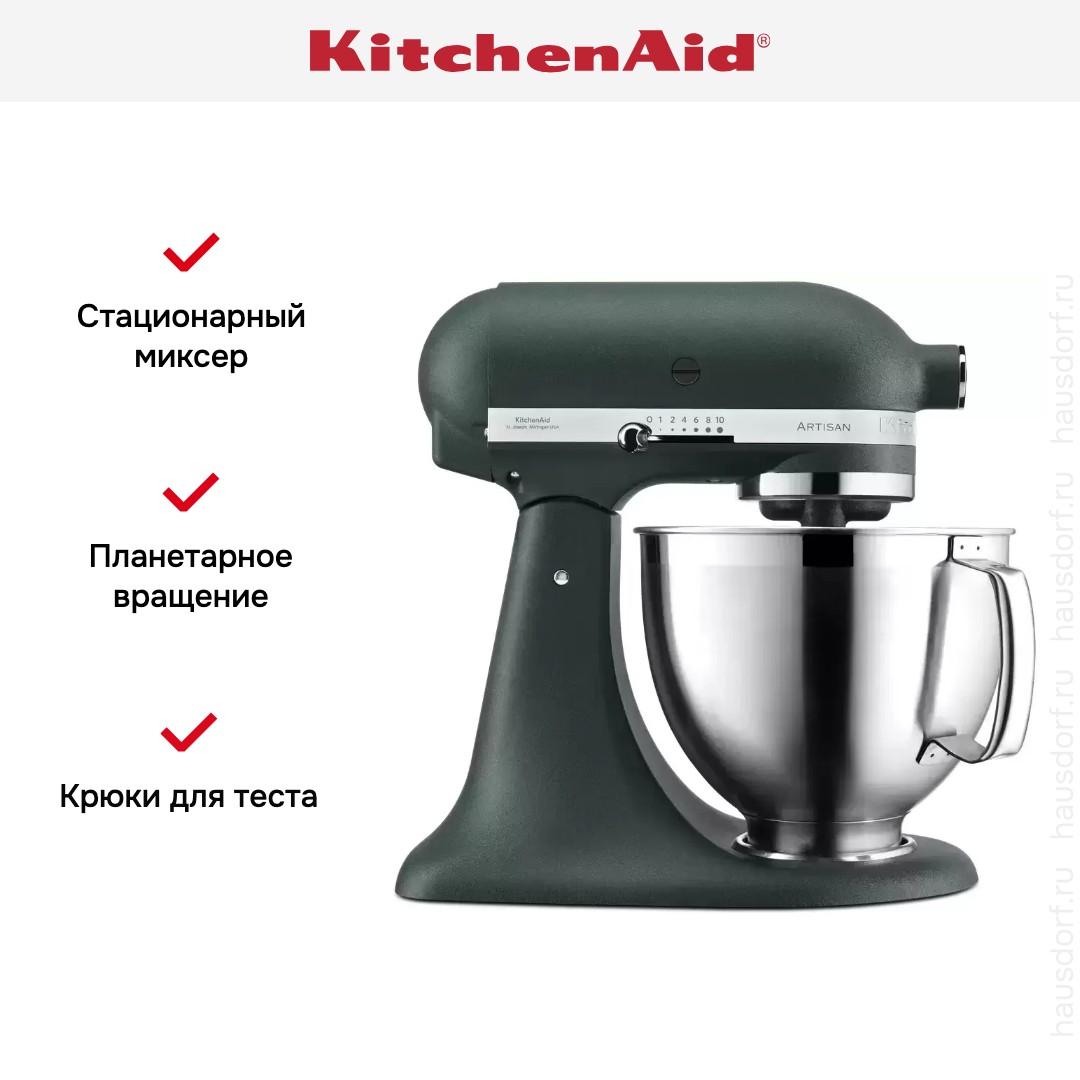 Стационарный миксер KitchenAid обладает высокой мощностью, работает автономно после выбора программ и справляется даже с густыми и вязкими текстурами. Оснащен технологией планетарного вращения: насадка движется не только по кругу чаши, но и вокруг своей оси, что сокращает время взбивания и гарантирует более однородный результат.