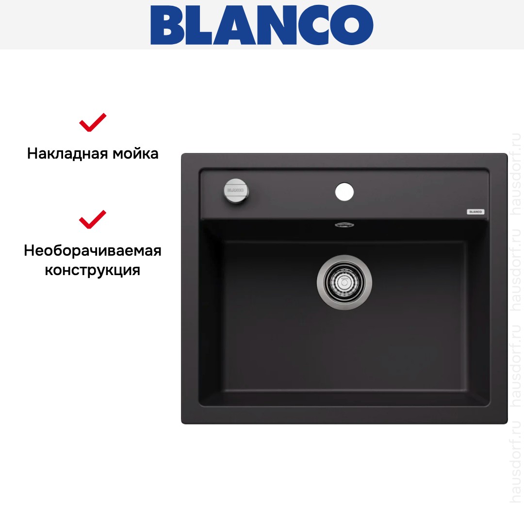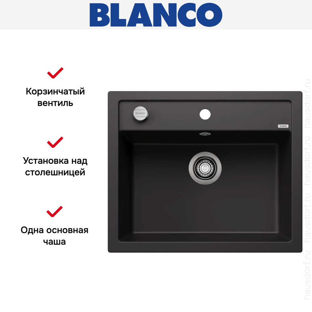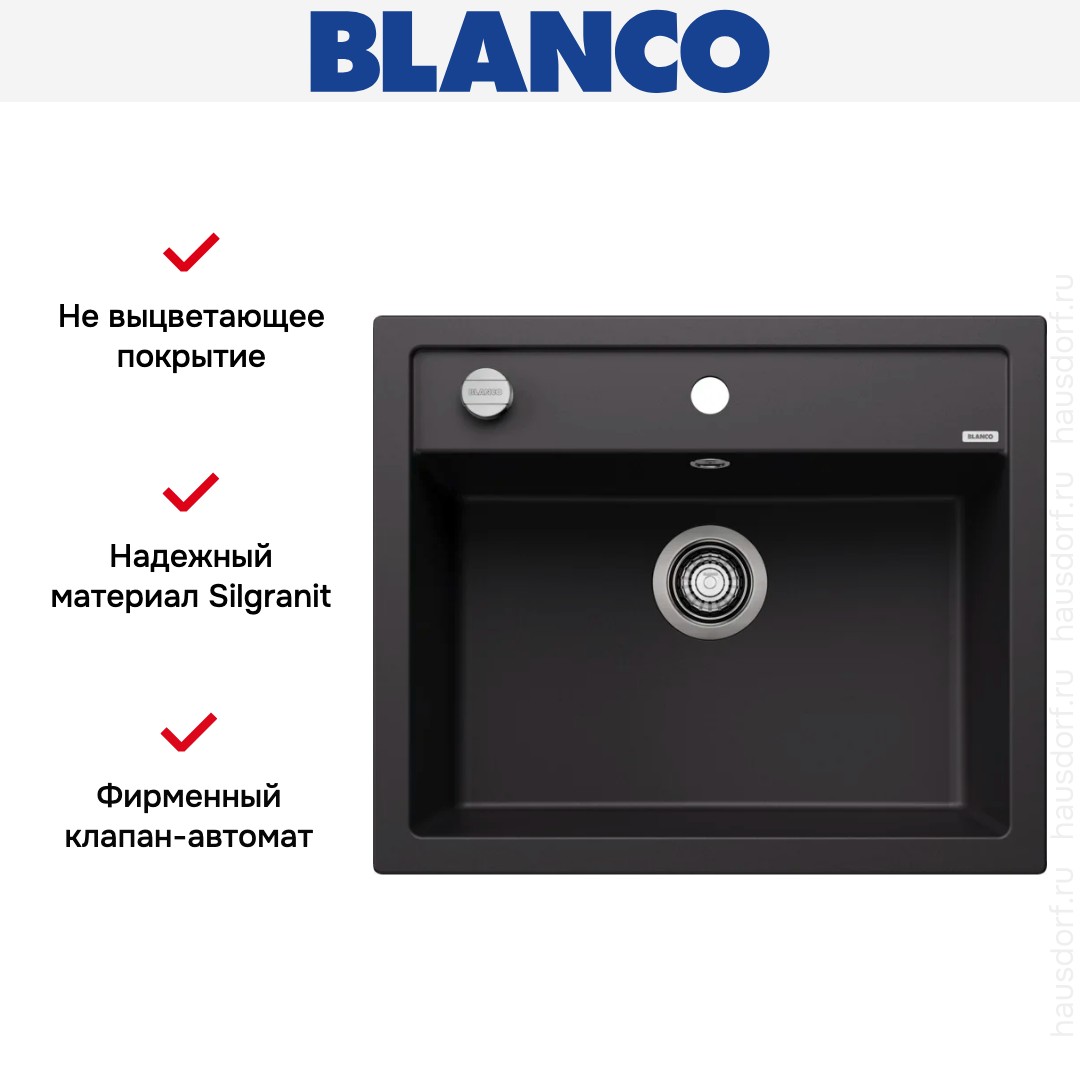 Мойка BLANCO DALAGO 6 Silgranit черный, клапан-автомат в Новосибирске