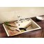 Ширина изделия — 80 см. Врезная конструкция и монтаж над столешницей позволяют защитить мебель от капель воды. Глубина чаши достигает 19 см: благодаря таким габаритам в мойке легко размещается самая крупная посуда, противни, продукты большого размера. В задней части имеется широкая площадка под смеситель, где можно разместить все необходимое для мытья посуды: моющее средство, губки и т.п.