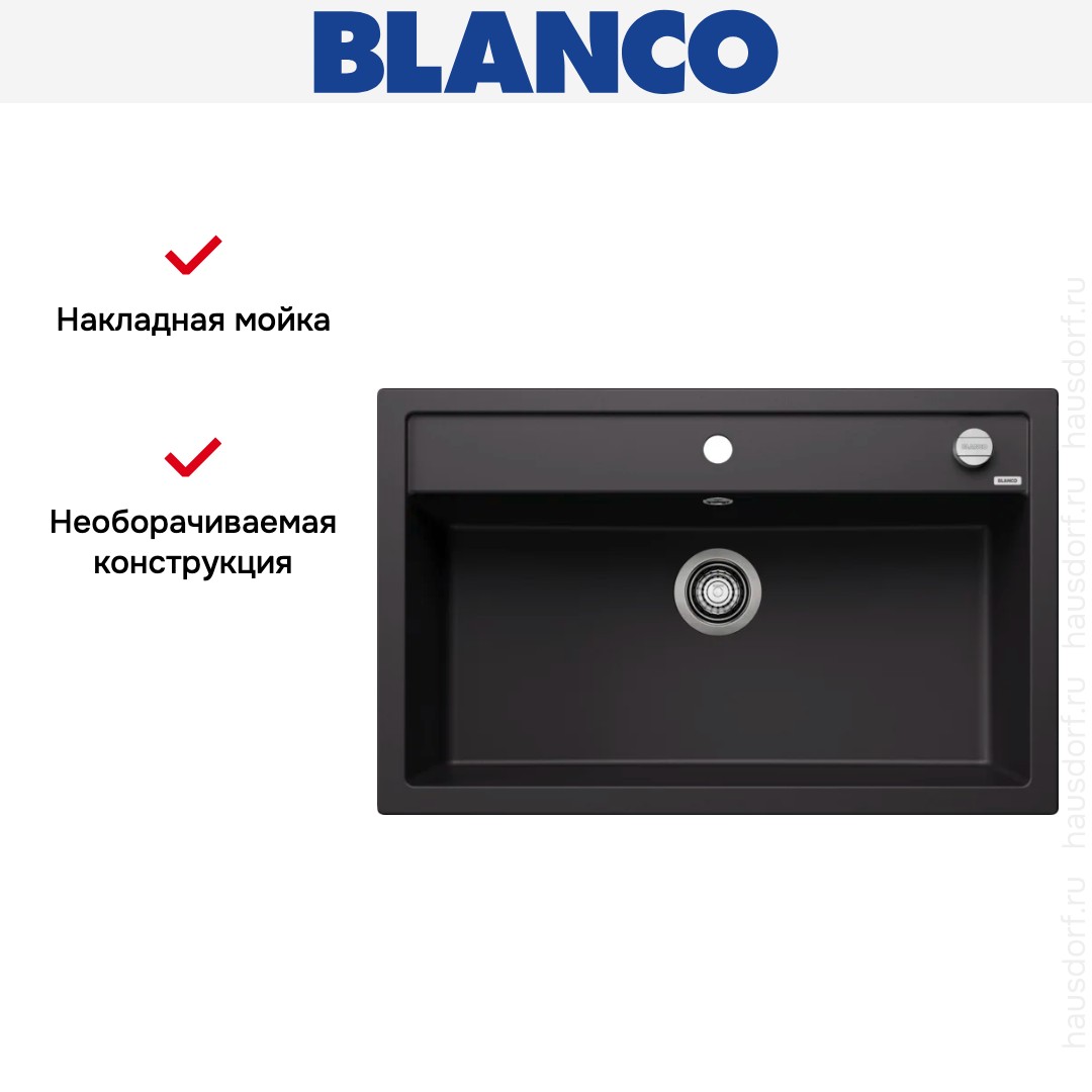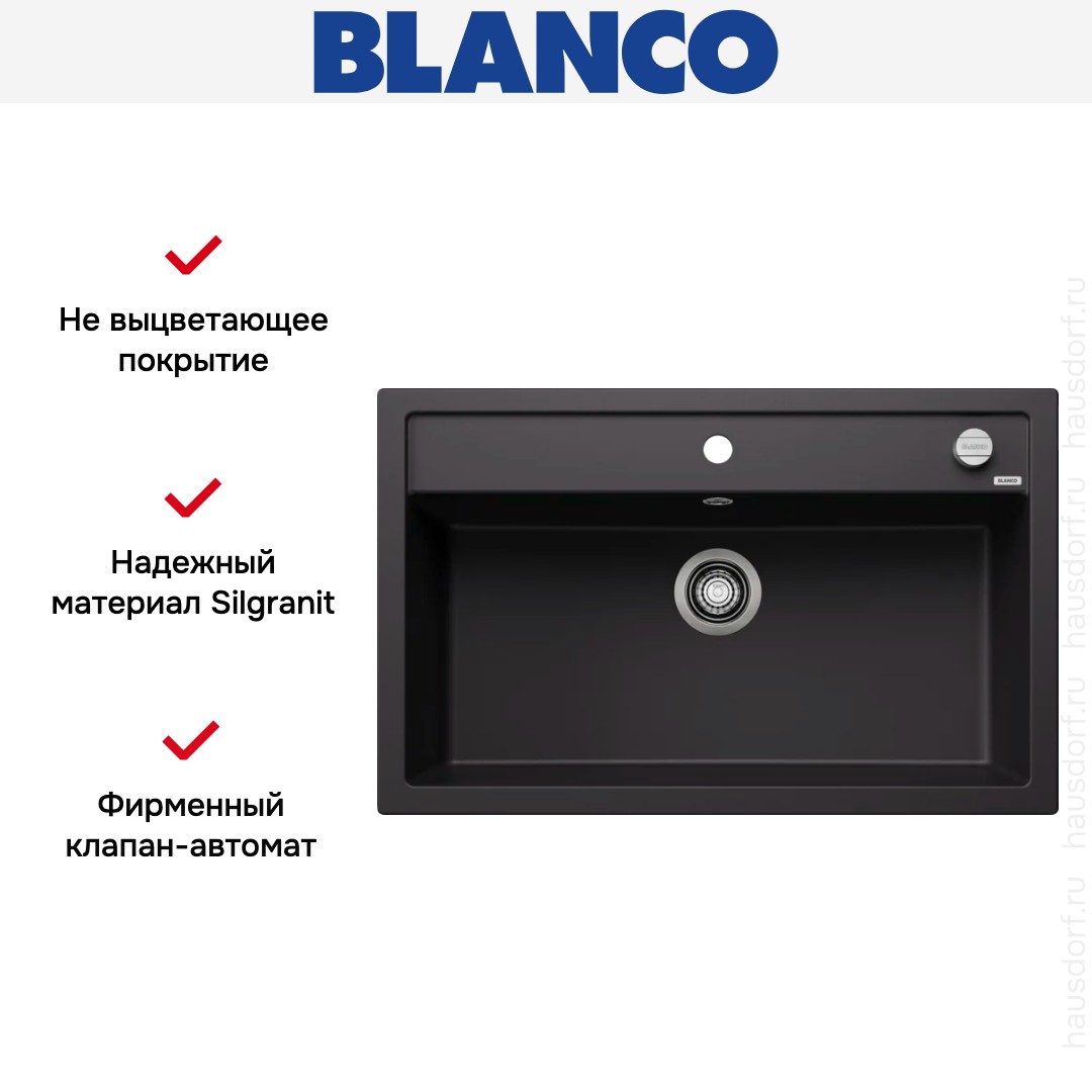 Мойка BLANCO DALAGO 8 Silgranit черный, клапан-автомат в Новосибирске