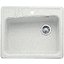 Необорачиваемую мойку можно установить только в одном положении — поэтому при наличии крыла необходимо заранее продумать, как вы хотите ее разместить. Модель имеет одно отверстие для смесителя, может быть разной формы — круглой, квадратной, прямоугольной и нестандартной. Изготавливаются из разных материалов.