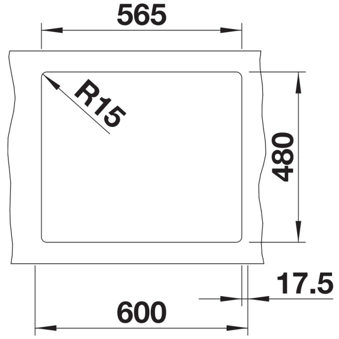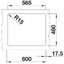 В основе конструкции одна основная чаша размером 51.5×34.5 см и глубиной 19 см. Такая конфигурация удобна для мойки крупных кастрюль и сковородок, а также для комфортной работы с посудой. Внешние габариты 58.5×50 см позволяют установить изделие на тумбу шириной 60 см. Монтажное отверстие по шаблону 56.5×48 см и радиус скругления 1.5 см ускоряют подготовку столешницы и упрощают точную подгонку.
