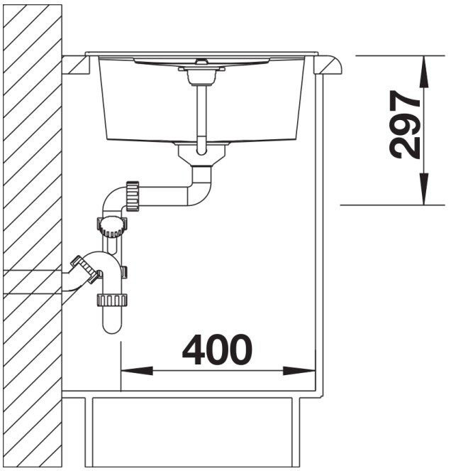 База — это шкаф, в который вы планируете устанавливать мойку. Данный параметр обозначает минимальную ширину между боковые стенками. Именно столько нужно, чтобы правильно разместить всю сантехнику.