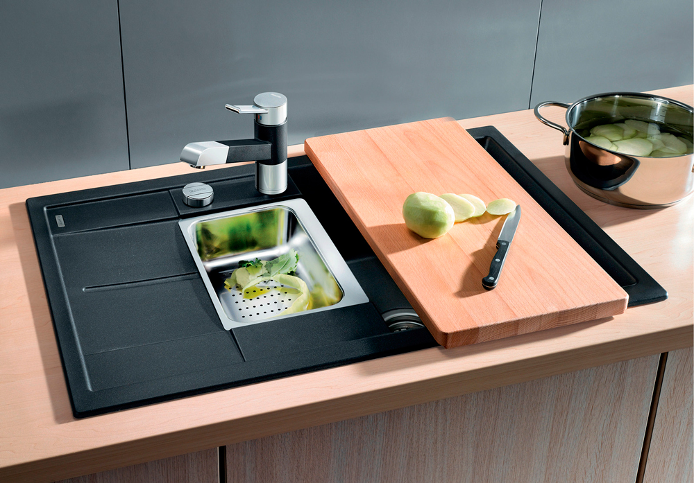 Накладная мойка Blanco — отличный выбор для тех, кто хочет создать гармоничное пространство с удобной сантехникой. простой в установке. Преимущество такой конструкции: легко подобрать практически к любой кухне и не придется демонтировать вместе с тумбой при ремонте или перестановке остальной мебели. Данная модель имеет стандартную форму, поэтому подходит большинству пользователей. Устанавливается над столешницей: это самый простой способ монтажа, зачастую с ним можно справиться даже без специалистов, главное — правильно рассчитать размеры ниши.