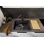 Эту модель можно установить только в одном положении — подходит для гарнитура с фиксированным местом смесителя. Конструкция предусматривает небольшой бортик по краю. Для корректного размещения вам понадобится база шириной 60 см.