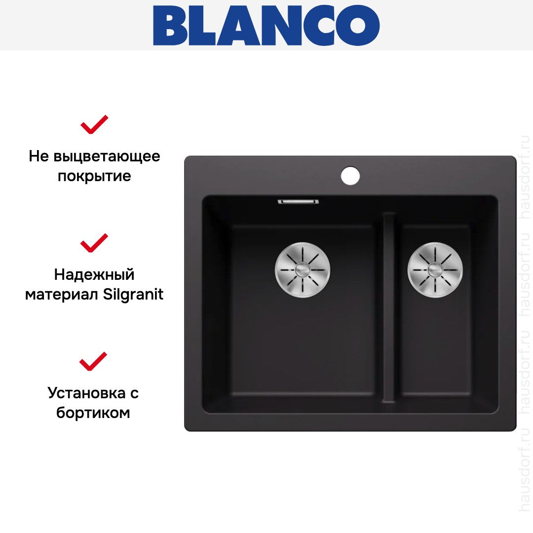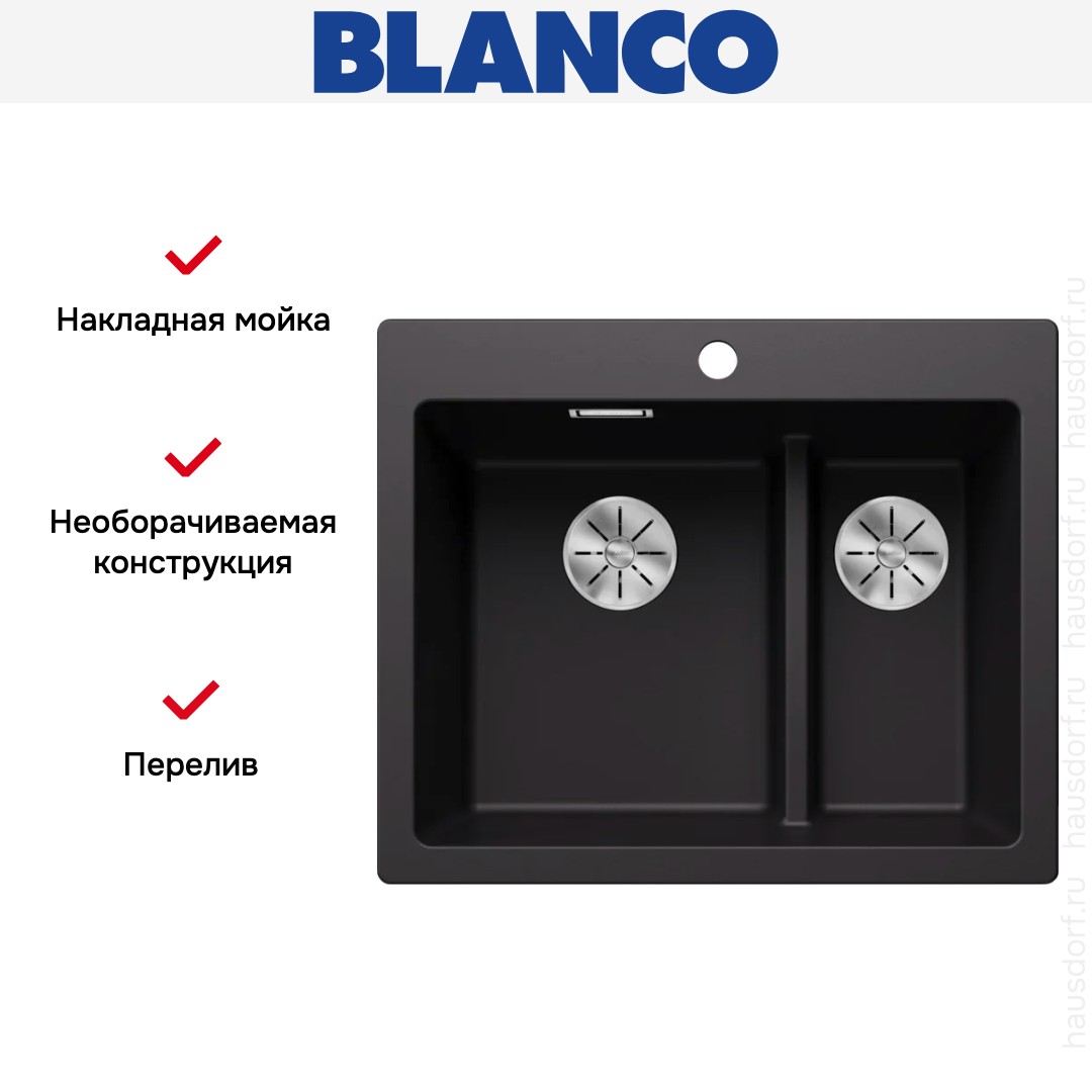 Накладная мойка Blanco — отличный выбор для тех, кто хочет создать гармоничное пространство с удобной сантехникой. простой в установке. Преимущество такой конструкции: легко подобрать практически к любой кухне и не придется демонтировать вместе с тумбой при ремонте или перестановке остальной мебели. Данная модель имеет стандартную форму, поэтому подходит большинству пользователей. Устанавливается над столешницей: это самый простой способ монтажа, зачастую с ним можно справиться даже без специалистов, главное — правильно рассчитать размеры ниши.