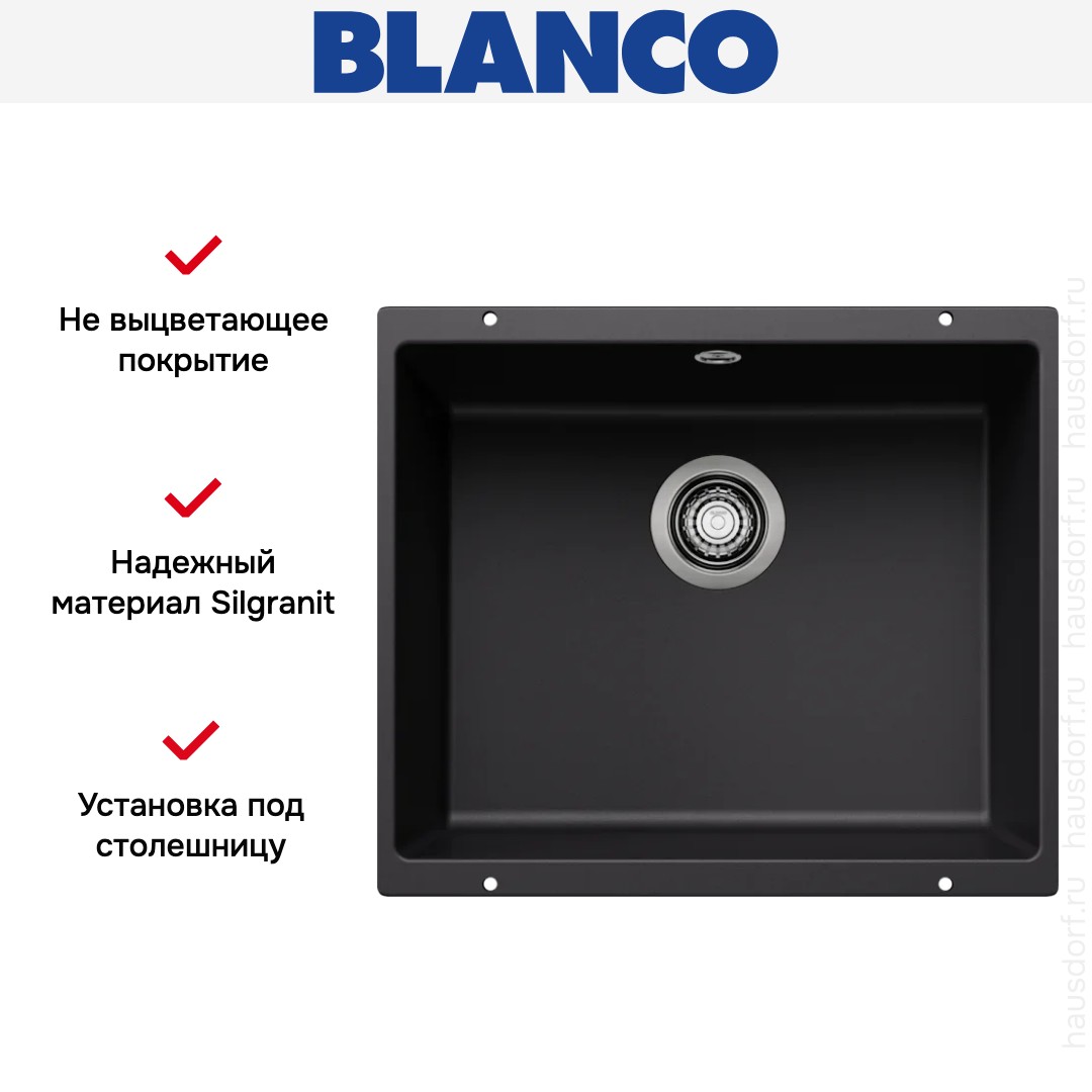 Обратите внимание на дизайнерские отличия мойки Бланко, которые помогут в создании идеальной кухни в вашем доме. Она выполнена в цвете черный. Основной материал — Silgranit, он гарантирует надежность и долгие годы службы без повреждений.