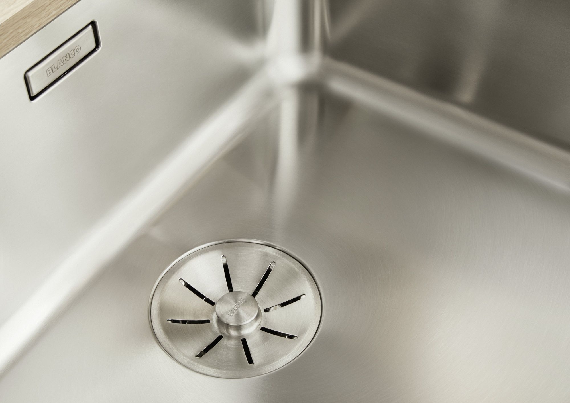 Система скрытого перелива C-overflow аккуратно интегрирована в корпус, что исключает видимые каналы и сохраняет чистые линии. Такой перелив предотвращает переливание воды и защищает кухню от подтеков. Комплектный корзинчатый вентиль в сочетании с системой слива InFino обеспечивает надежный отток и простоту обслуживания. Диаметр сливного отверстия 3,5 дюйма совместим с большинством современных сифонов и аксессуаров, что облегчает подбор дополнительного оборудования.