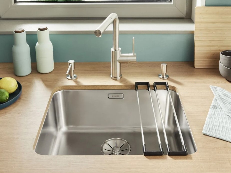 Установка под столешницу заключается в том, что мойку устанавливают таким образом, чтобы бортики не были видны на поверхности, а уровень бортиков находился ниже уровня столешницы.