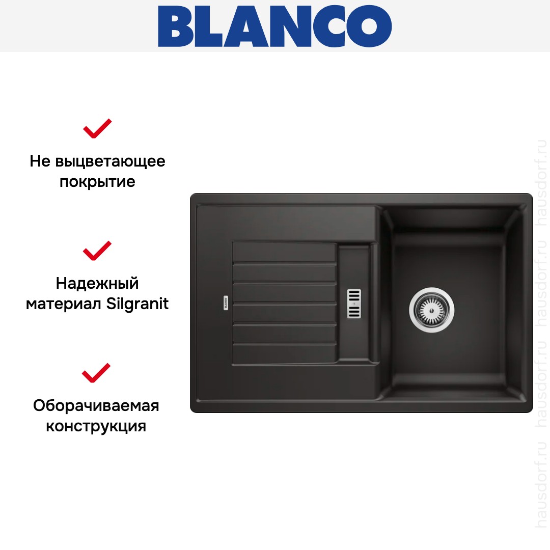 Мойка BLANCO ZIA 45 S Silgranit черный в Новосибирске