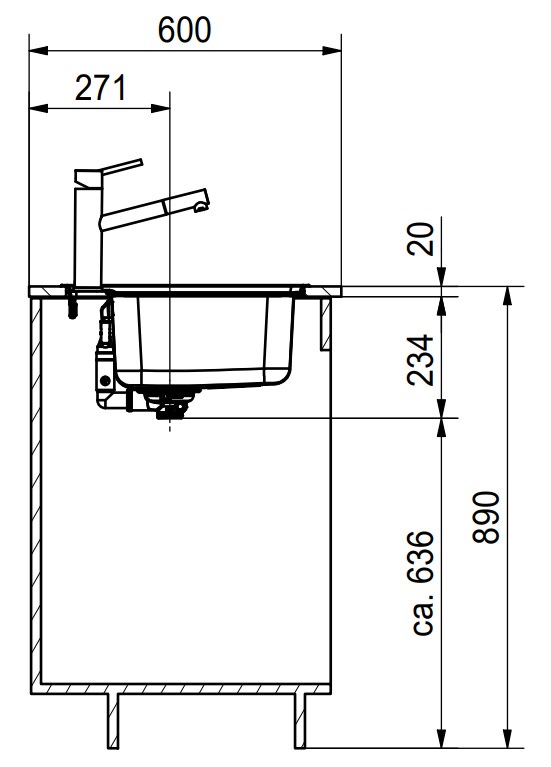 База — это шкаф, в который вы планируете устанавливать мойку. Данный параметр обозначает минимальную ширину между боковые стенками. Именно столько нужно, чтобы правильно разместить всю сантехнику.