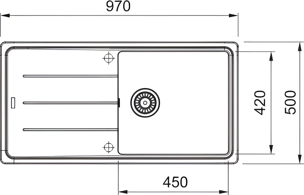 Дополнительная поверхность из того же материала, что и мойка. Может использоваться для хранения бытовой химии, повышает комфорт при мытье продуктов — их можно держать под рукой, не замочив столешницу.