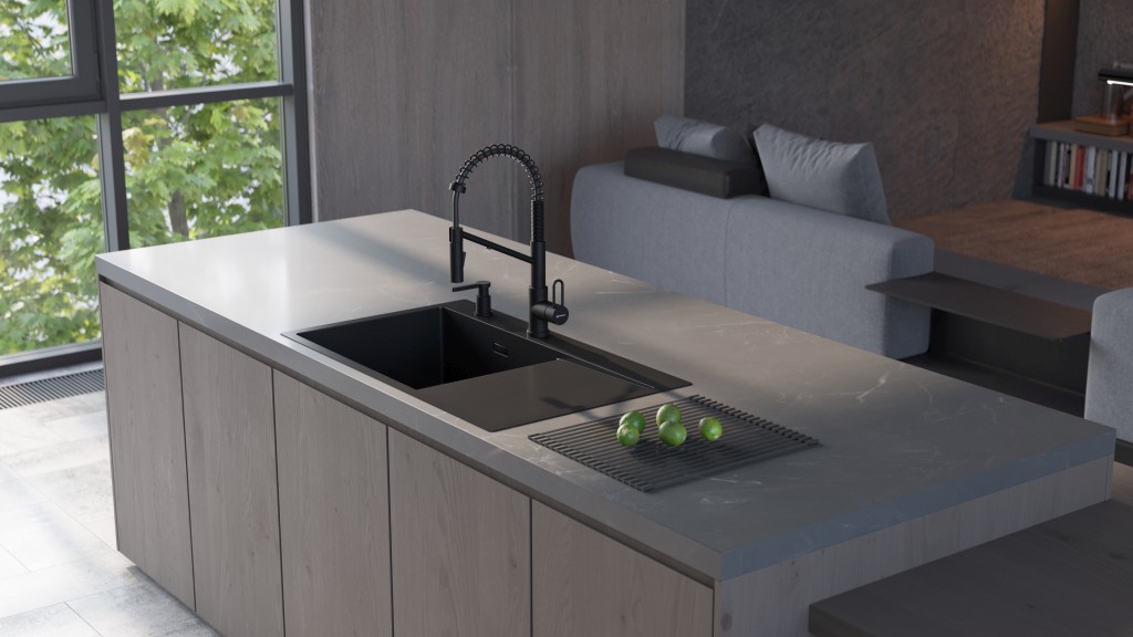 вровень со столешницей — создается ощущение бесшовного пространства, а если мойка сделана из того же материала, то и единого дизайна;