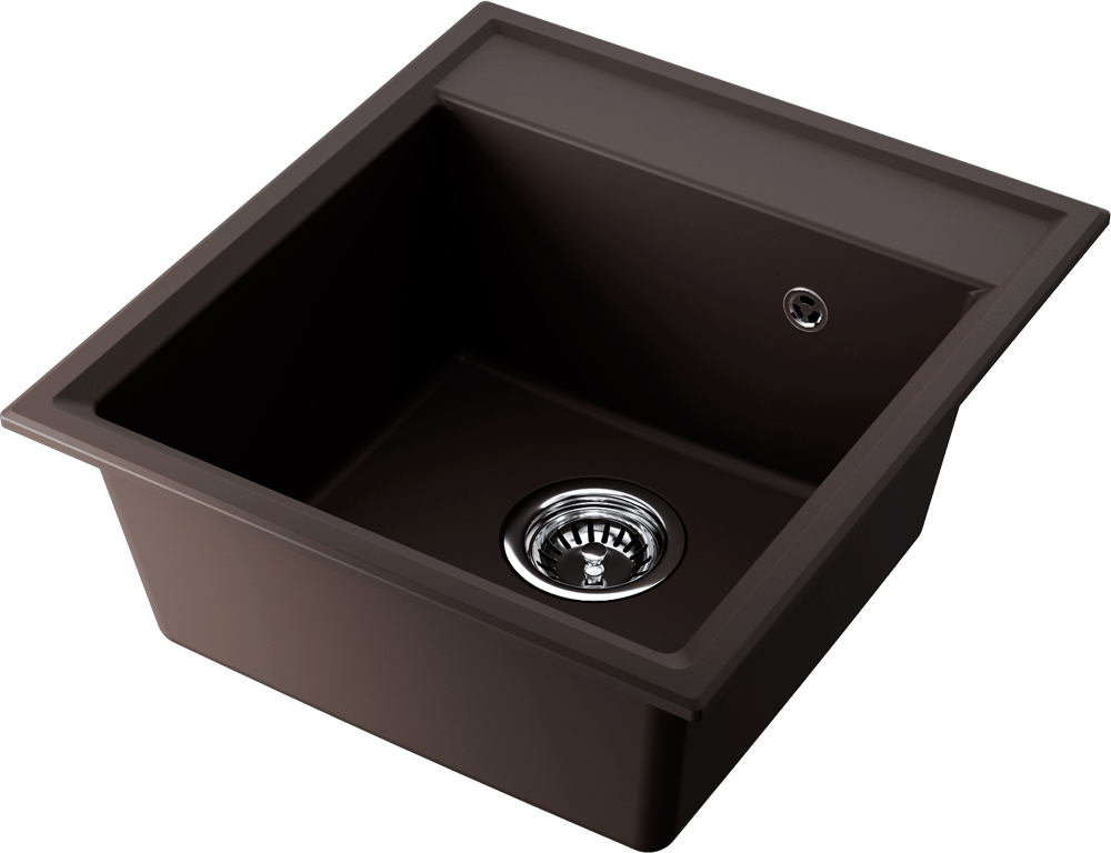 Мойка Omoikiri Daisen 46-ES выполнена в квадратной форме и выделяется насыщенным цветом «эспрессо», который придаёт кухонному пространству выразительный, завершённый вид; поверхность из ArtGranit толщиной 10 мм образована методом литья, что отражает качество изготовления и аккуратность линий, а общий вес 5.1 кг делает корпус достаточно лёгким для монтажа над столешницей. Габариты изделия 46×51 см и ширина мойки 46 см позволяют компактно вписаться в кухонный гарнитур с базой от 45 см, при этом для установки требуется вырез в столешнице размером 44×49 см (ширина монтажного отверстия 44 см, глубина монтажного отверстия 49 см), что упрощает подготовку рабочей поверхности и обеспечивает точную посадку. Конструкция необорачиваемая, рассчитанная на одно основное пространство — одиночную чашу размером 39×37 см и её вертикальная глубина 19,5 см обеспечивает достаточный объём для повседневных задач и удобство при размещении посуды. Наличие перелива снижает риск затопления и добавляет практичности, а комплектность включает корзинчатый вентиль и сифон, что облегчает подключение и сразу делает изделие готовым к эксплуатации; фиксация достигается при помощи прилагаемых зажимов, обеспечивающих надёжное крепление к столешнице при установке «над поверхностью». В описываемом варианте монтаж осуществляется накладным способом, благодаря чему внутренняя часть конструкции остаётся доступной для обслуживания, а габариты основной чаши и общие наружные размеры согласованы таким образом, чтобы сохранить полезную площадь столешницы и одновременно предложить удобство использования. Особенности геометрии — чёткие прямые углы и аккуратные радиусы перехода — подчёркивают современную эстетику изделия и вписываются в минималистичные решения интерьера. Цветовое решение в тёплой шоколадной гамме даёт возможность создавать контрастные композиции с рабочими поверхностями светлых или тёмных оттенков, а однородная структура гранита искусственного происхождения обеспечивает равномерность тона. Указанные размеры монтажа и самого изделия делают выбор простым при планировании кухни: ширина базы 45 см и параметры выреза 44×49 см — ключевые характеристики, которые следует учесть при подготовке столешницы. Комплект поставки, включающий корзинчатый вентиль, сифон и фиксирующие зажимы, облегчает финальный этап установки и уменьшает необходимость в дополнительных покупках. Элементы управления стока и комплектующие интегрированы таким образом, чтобы не нарушать внешний вид и не выступать за габариты основной плоскости, при этом сохраняя функциональность. Для тех, кто ценит аккуратный, сдержанный дизайн и продуманную компоновку рабочего места на кухне, такое решение станет гармоничным соединением формы и практичности, предлагая компактные размеры при полноценной рабочей ёмкости чаши и удобстве монтажа над столешницей.