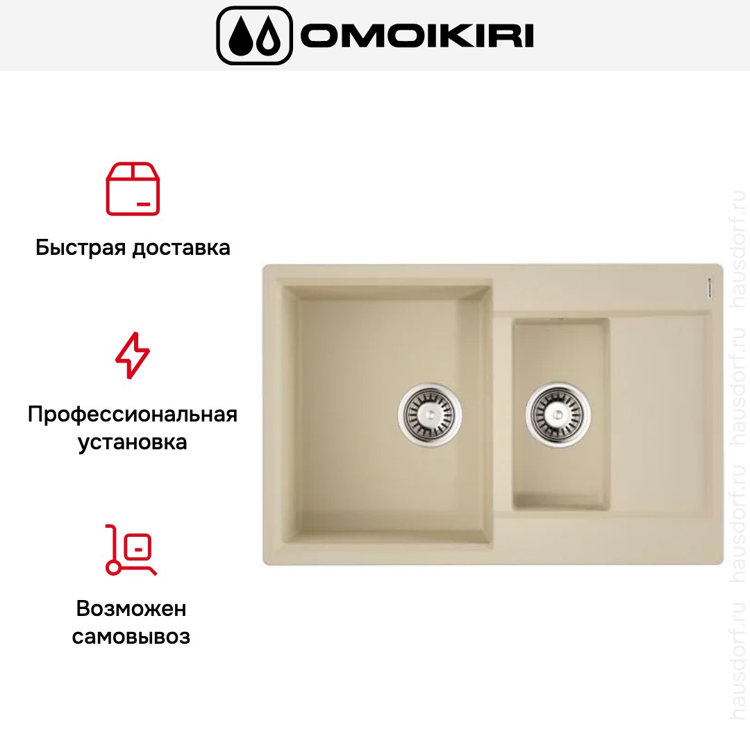 Мойка OMOIKIRI Daisen 78-2T BE — накладная прямоугольная модель ванильного цвета, созданная для удобства на кухне и гармонии с интерьером.