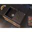 Черный цвет поверхности скрывает мелкие следы и придает рабочей зоне выразительность, сочетаясь с мойками и смесителями в контрастной или монохромной гамме. Литая конструкция минимизирует стыки и щели, что облегчает уход: достаточно мягкой губки и нейтрального моющего средства. Для сохранения внешнего вида рекомендуется избегать абразивных чистящих паст и сильных кислотных средств, а также резких ударов по кромке.