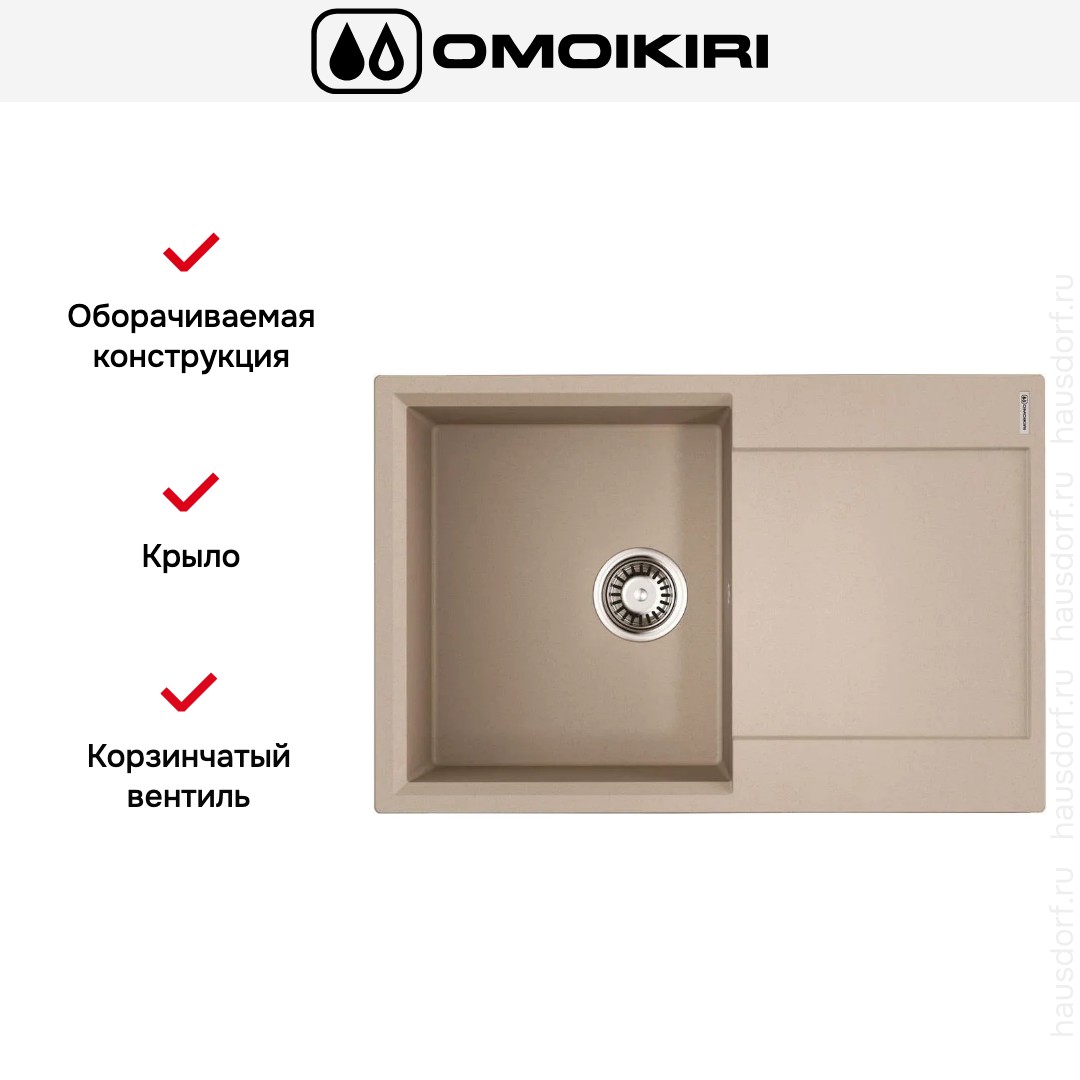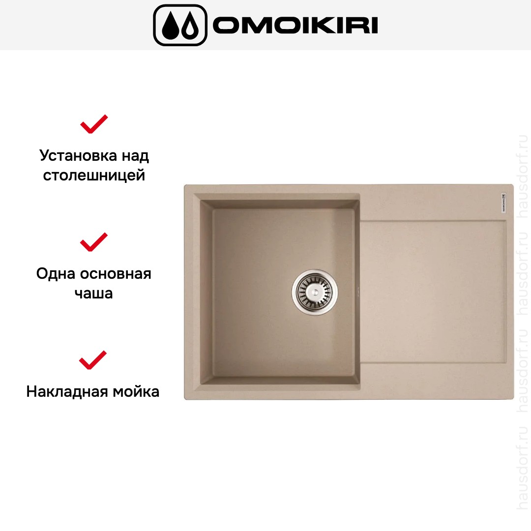 Мойка OMOIKIRI Daisen 78-SA — накладная прямоугольная модель бежевого цвета, созданная для тех, кто ценит гармонию внешнего вида и практичность. Внешне изделие выглядит сдержанно и стильно. Актуальная палитра вписывается в интерьеры в теплых тонах. Четкие прямые линии корпуса подчеркивают современный характер. Компактные габариты делают модель универсальной для разных кухонь.