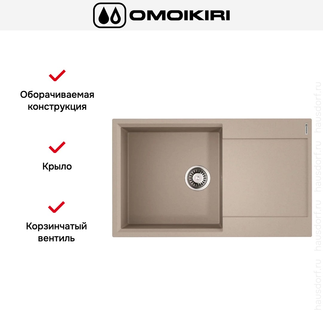 Обратите внимание на дизайнерские отличия мойки Омойкири, которые помогут в создании идеальной кухни в вашем доме. Она выполнена в цвете бежевый. Крыло, расположенное является дополнительным рабочим пространством, на котором можно сушить посуду, разделывать мясо и нарезать овощи.