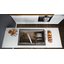Дизайн изделия выдержан в минималистичных формах с мягкими скосами и ровными гранями, что делает его универсальным для современных кухонь. Белая поверхность визуально увеличивает рабочее пространство и легко сочетается с различными цветами фасадов. Негеометричная простота и матовая фактура ArtCeramic позволяют создать эффект чистоты и аккуратности без излишней брутальности.