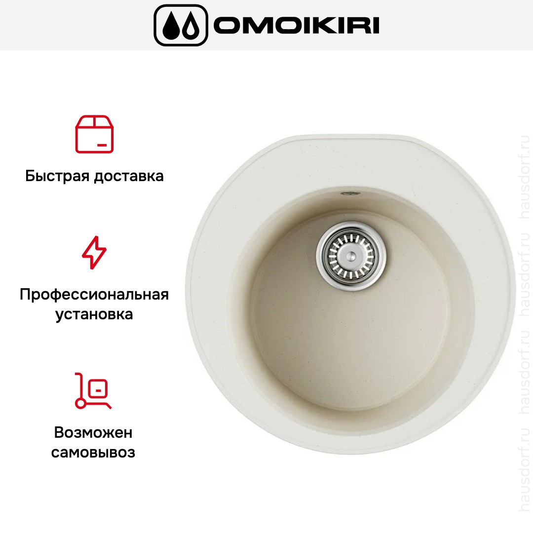 Мойка OMOIKIRI Miya 50R WH — накладной кухонный элемент круглой формы, выполненный в белом цвете и привлекающий сдержанным минимализмом. Она будет заметна на столешнице за счёт аккуратного ободка, но при этом не нарушит общую концепцию пространства. За счёт ровных линий и нейтрального тона изделие легко сочетается с современными и классическими фасадами.
