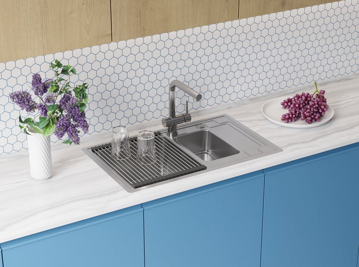Мойка с одной чашей — классический вариант, который привычен пользователям. Вариации этой конструкции — мойка с одной основной и одной дополнительной чашей, с аксессуарами (например, коландером), с крылом. Стандартная глубина таких моделей — 15-20 см, чтобы внутри поместилась посуда или продукты, а брызги не попадали вне.