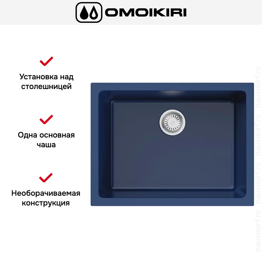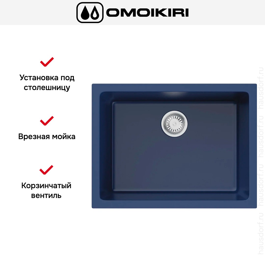 Мойка OMOIKIRI Okinoshima 61-U I-IB Matt — компактное встраиваемое решение с выразительным матовым оттенком индиго, которое добавит акцента в любой кухонный гарнитур. Внешний вид отличается строгой прямоугольной геометрией и лаконичной линией, что делает изделие универсальным в сочетании с разными стилями интерьера. Матовая поверхность смягчает световые блики и придает глубину цвету, одновременно скрывая мелкие следы от воды.