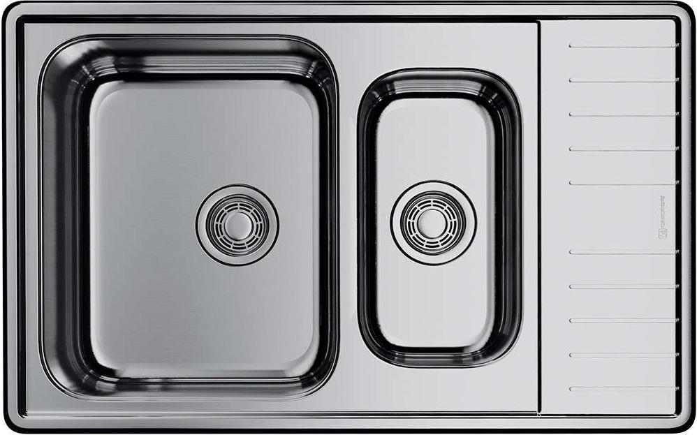 Конструкция оборачиваемая, поэтому крыло можно расположить слева или справа в зависимости от эргономики рабочего треугольника. Две функциональные чаши с разными размерами создают рабочие зоны: основная 34×42 см и глубина 18 см для больших кастрюль и сковород. Дополнительная 18×34 см и глубина 14,7 см отлично подходит для ополаскивания продуктов, очистки фруктов или слива воды. Наличие крыла даёт место для сушки посуды или временной расстановки утвари, а встроенный перелив защищает от переполнения и подтоплений.