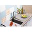 над столешницей — край модели выступает на несколько миллиметров, это удобно, так как подходит для любых поверхностей.