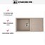 Дизайн отличается лаконичностью и функциональной симметрией, что делает раковину универсальной в разных интерьерах. Оборачиваемая конструкция позволяет выбрать ориентацию крылья влево или вправо, чтобы вписать изделие в планировку кухни. Наличие отделённого крыла даёт дополнительную поверхность для сушки и подготовки продуктов. Бежевый цвет смягчает визуальное восприятие и помогает скрывать мелкие загрязнения и царапины.
