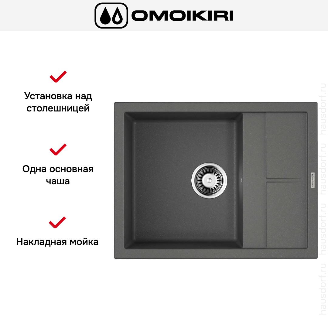 Мойка Omoikiri Sumi 65 PL — накладная прямоугольная модель в цвете Серый Ленинград, выполненная в сдержанном современном стиле. Элегантная геометрия и матовая фактура легко вписываются в интерьеры от минимализма до лофта. Габариты 65×50 см позволяют сохранить свободное рабочее пространство на столешнице и одновременно обеспечить удобную зону для мытья и сушки посуды.