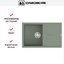 Прямоугольная накладная мойка серо-зеленого цвета выглядит сдержанно и небанально: широкая панель 79×50 см с интегрированным крылом формирует единое рабочее поле над столешницей. Линии ровные, пропорции выверены, за счет чего модель легко вписывается в кухонный гарнитур.