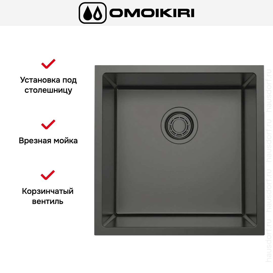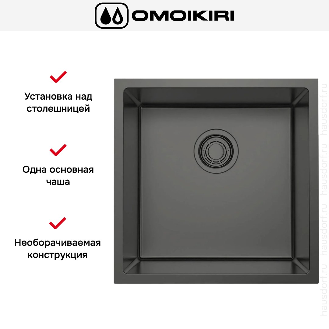 Мойка Omoikiri Tadzava 44-U-I Ultra GM — врезная квадратная модель с аккуратным современным обликом и выразительным цветом вороненой стали. Внешний вид подчеркивает строгую геометрию с небольшим радиусом скругления, что придает кухне минималистичный благородный характер. Компактные габариты 44×44 см делают её отличным решением для небольших столешниц и зон мойки в студиях. Квадратная форма и радиус 1 см создают визуально ровные линии, которые легко сочетаются с различными стилями кухонной мебели.
