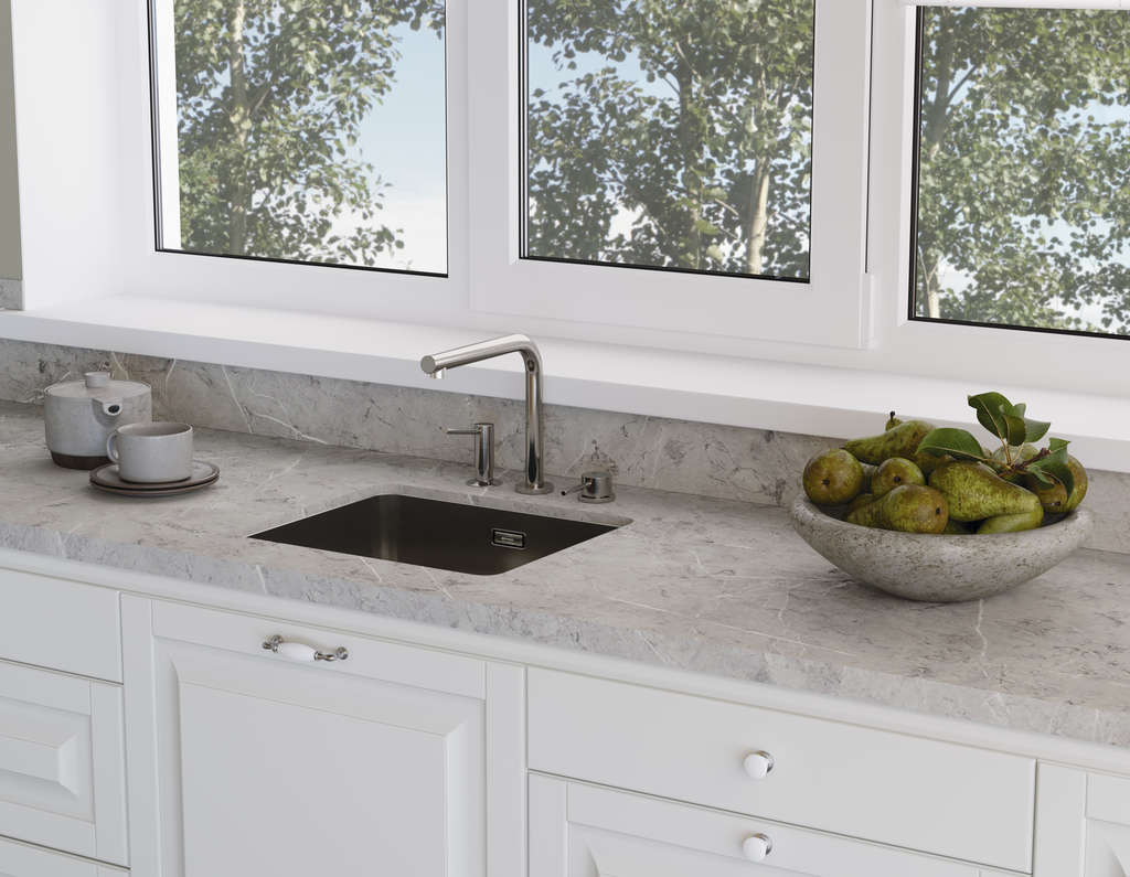 Врезная — устанавливается в подготовленное под нее отверстие в столешнице, крепится по краям среза.