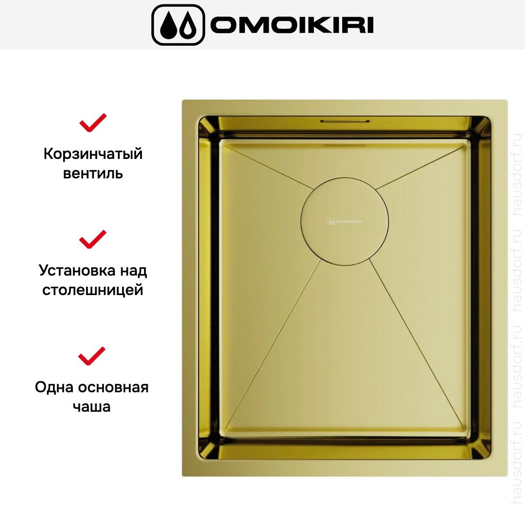 Корпус из нержавеющей стали толщиной 1,2 мм обеспечивает прочность и долговечность, а PVD-покрытие в цвете светлого золота придаёт благородный оттенок и элегантность. Еще одним преимуществом покрытия является устойчивость к царапинам и потере цвета. Мойка надолго сохранит свой прекрасный внешний вид. Ручное производство гарантирует высокий уровень отделки и аккуратность швов. В комплект входят корзинчатый вентиль и сифон, а также крепления для монтажа — всё необходимое для быстрой установки.
