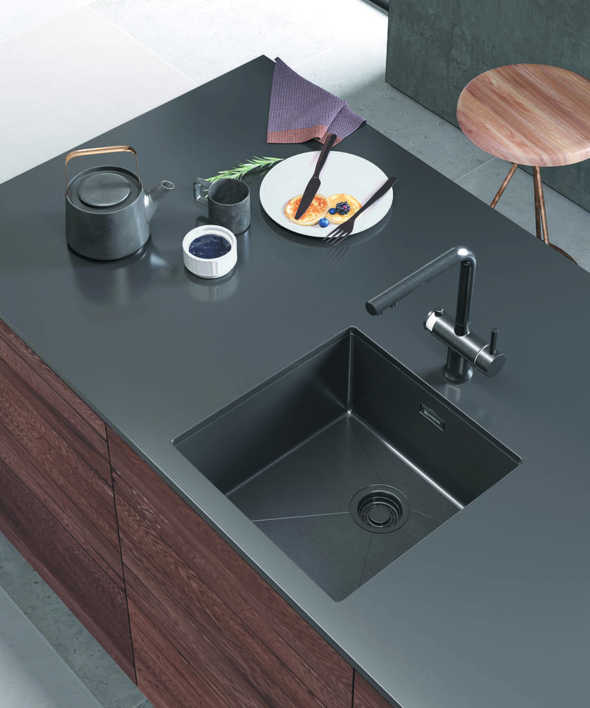 Установка под столешницу заключается в том, что мойку устанавливают таким образом, чтобы бортики не были видны на поверхности, а уровень бортиков находился ниже уровня столешницы.
