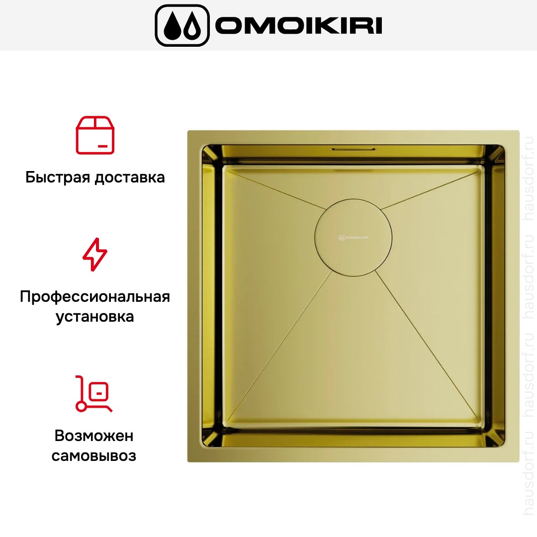 Мойка OMOIKIRI Taki 44 U IF LG выполнена в квадратном формате 44×44 см и привлекает внимание мягким светлым золотом. Ее лаконичные линии и тонкий PVD-слой создают изысканный акцент в современной кухне. Небольшие радиусы скругления 1 см придают строгому силуэту аккуратность и делают изделие визуально лёгким. Материал корпуса — нержавеющая сталь, обработанная вручную, что обеспечивает ровную текстуру и глубину тона покрытия.
