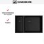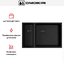 Материал — нержавеющая сталь с PVD-покрытием в графитовом тоне сочетает коррозионную стойкость и эстетичность. PVD-слой повышает устойчивость к царапинам и стиранию цвета, а металлическая основа сохраняет санитарные свойства поверхности. Ручной метод производства гарантирует тщательную подгонку швов и аккуратную обработку краев, что положительно сказывается на долговечности и внешнем виде.