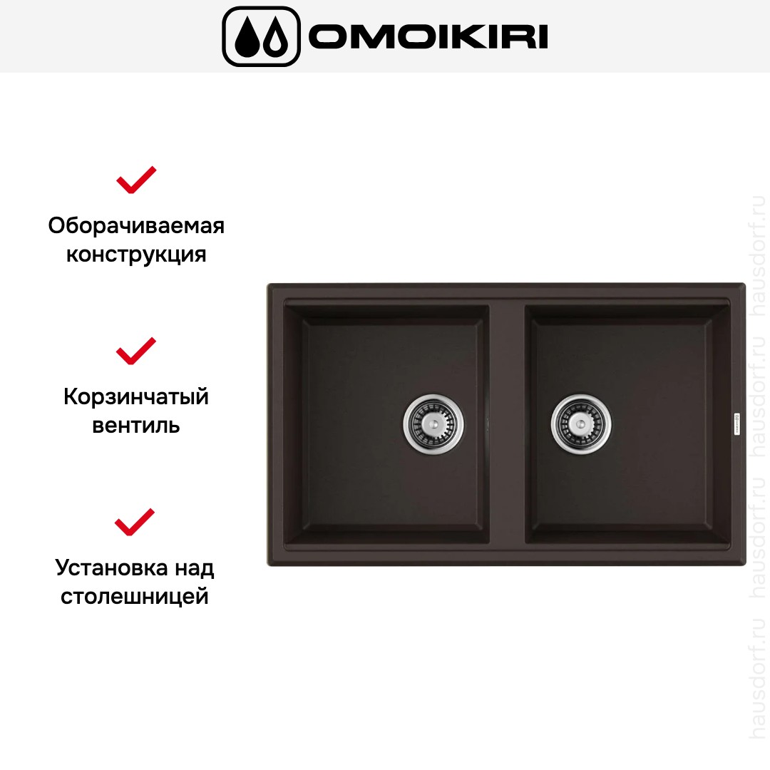 Мойка Omoikiri Tedori 86-2 DC — накладная прямоугольная модель, выполненная в тёмном шоколадном оттенке, которая привносит в кухню сдержанную элегантность и глубину цвета. Её строгие геометрические линии хорошо сочетаются с современными и классическими гарнитурами, а насыщенный тон скрывает мелкие загрязнения и придаёт рабочей зоне уютный акцент. Компактные габариты 86×51 см делают изделие удобным выбором для средней по размеру столешницы, при этом оно сохраняет функциональность крупных моек.