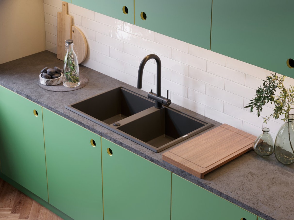 Две равноценные по размеру чаши позволяют разделить мытье посуды и продуктов. В одной вы можете оставить тарелки до вечера или сложить кастрюли в процессе приготовления, чтобы не тратить на них время. В другой — чистой — можно оставить овощи, фрукты, зелень, ожидающие промывки.